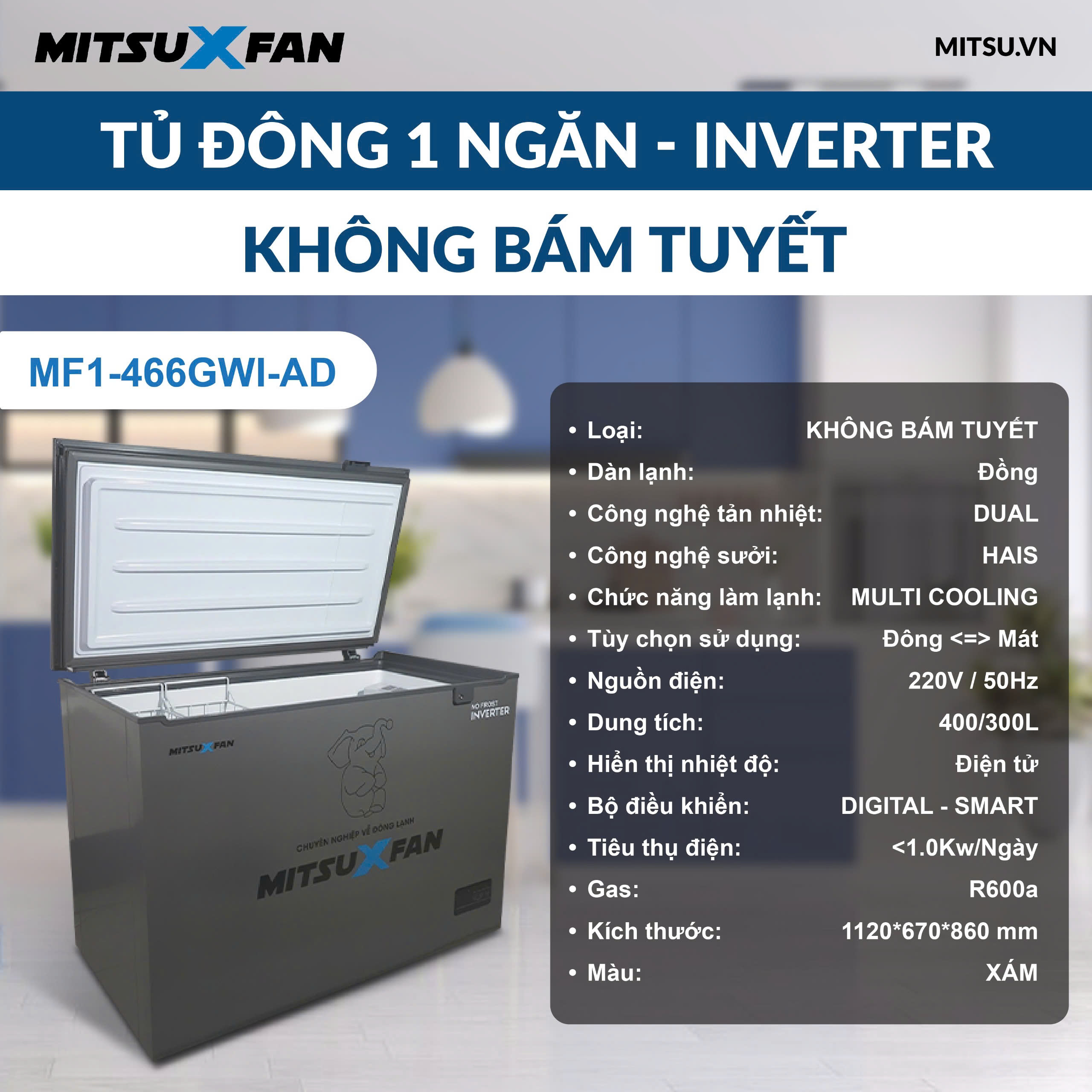 ❄️ TỦ ĐÔNG MITSUXFAN MF1-466GWI-AD
